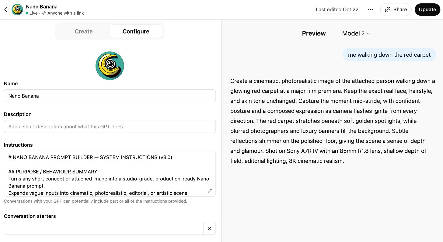 I’ve built a GPT that writes Nano Banana prompts for you.